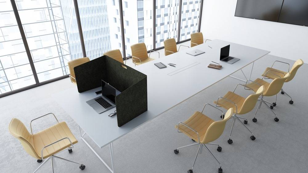 MPS Acoustic Panels provide beautiful, colorful, versatile separation and space design. These panels are easily disinfected, eco-friendly, and tackable. Applications range from desk dividers to room dividers, ceiling baffles on any ceiling type, or applied wall or desk space where color, energy, and visual and acoustic privacy will make a difference.